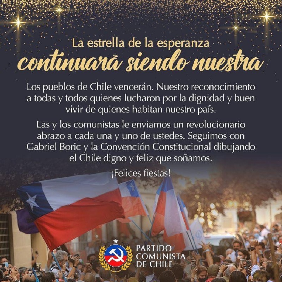 Las y los comunistas enviamos un revolucionario abrazo a todo el pueblo, y nuestros profundos deseos de justicia, dignidad y una nueva Constitución para Chile.